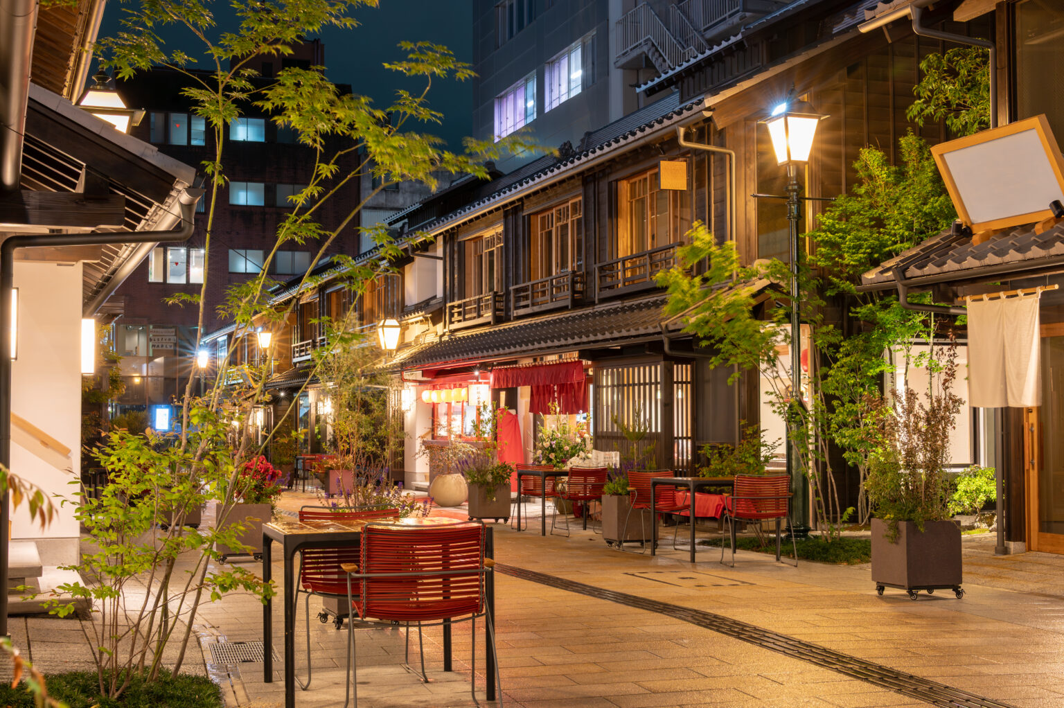 甲府駅の南口エリアにある「小江戸甲府 花小路」は、城下町・甲府の情緒を現代に再現した注目スポット。小江戸の風情ある町並みの中で、山梨グルメ、石灯籠や趣のある手水鉢が添えられた写真映えスポットなどが楽しめます。昼はにぎやかに、夜は街灯が灯る落ち着いた雰囲気の中で散策ができ、ジュエリーやスイーツ、飲食店など多彩な店舗が並び、散策の楽しさが広がります。